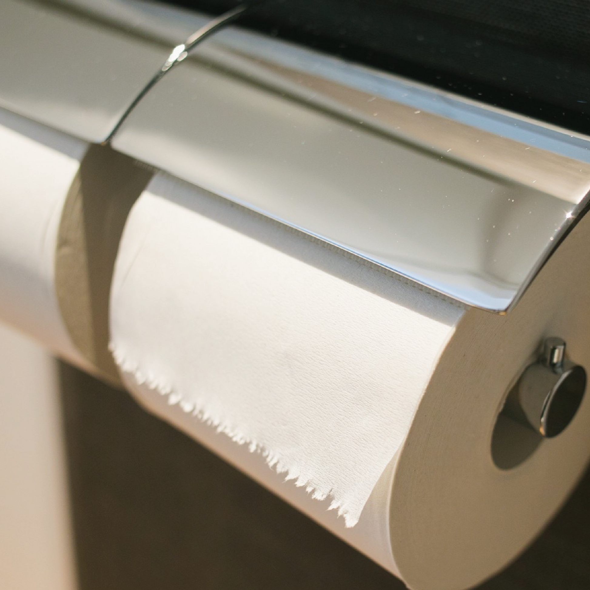 ■超強力圧縮加工による製造(直径約11.7㎝/1R)で、200m長尺ロールなのに保管場所を取りません。JIS規格に準じた製品で、どのご家庭のホルダーでも使用できます。